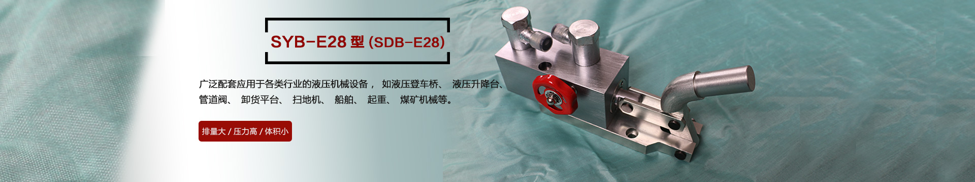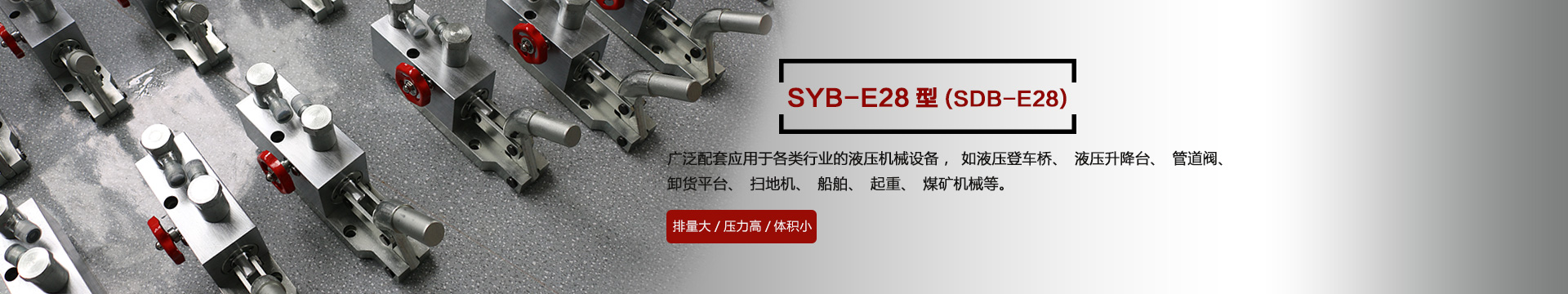 本產(chǎn)品SYB-E28型在本公司原有的SDB-E28型基礎(chǔ)上不斷改進(jìn)改良,廣泛應(yīng)用于各種行業(yè)的機(jī)械設(shè)備,如液壓登車橋、液壓升降臺、管道閥、卸貨平臺、掃地機(jī)、船舶、起重、煤礦機(jī)械等液壓機(jī)械設(shè)備上,效率高、結(jié)構(gòu)緊湊,深受客戶的歡迎...[詳情]